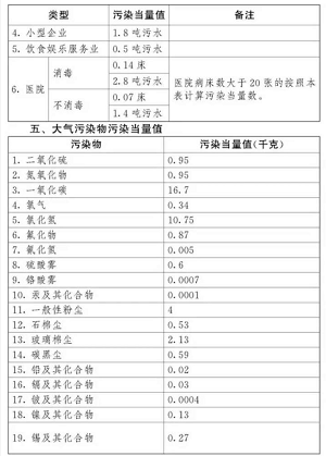第八條 應(yīng)稅大氣污染物、水污染物的污染當(dāng)量數(shù),以該污染物的排放量除以該污染物的污染當(dāng)量值計(jì)算。每種應(yīng)稅大氣污染物、水污染物的具體污染當(dāng)量值,依照本法所附《應(yīng)稅污染物和當(dāng)量值表》執(zhí)行。