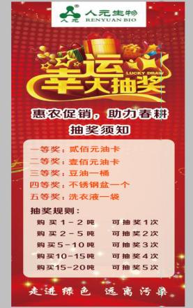 2016年12月我們鶴壁市人元生物技術(shù)發(fā)展有限公司將在浚縣、滑縣、淇縣等多地舉辦 “惠澤于農(nóng),助力春耕”的肥料有獎(jiǎng)促銷活動(dòng)。各位有需要購肥的用戶可前往我公司活動(dòng)現(xiàn)場(chǎng)或來我公司,參與有獎(jiǎng)促銷活動(dòng)。機(jī)不可失,失不再來。